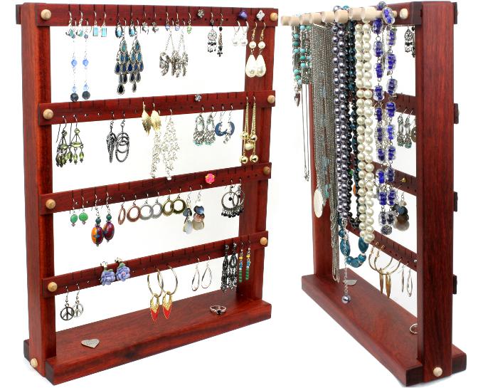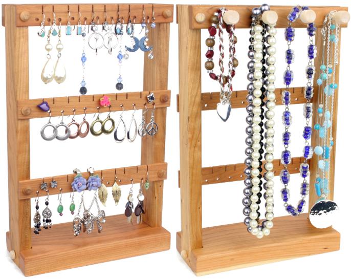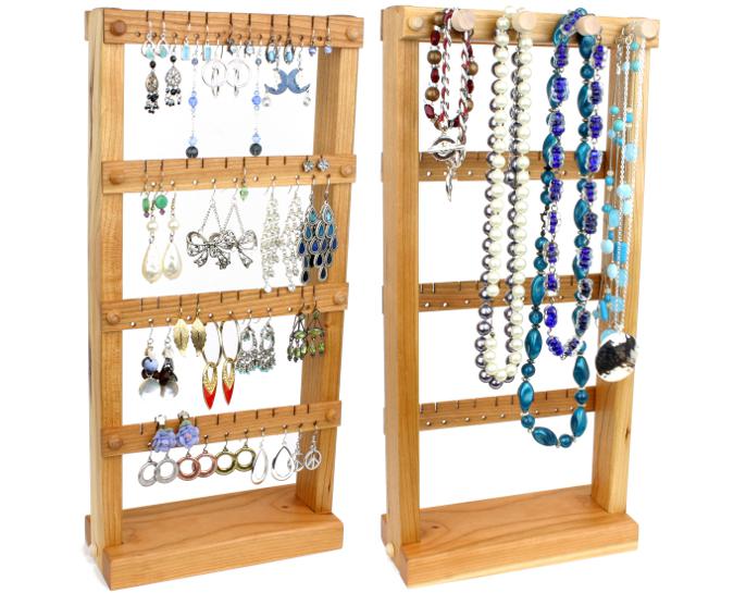 Jewelry stands vary in depth from 2 1/2" for the smaller ones up to 3" for the 48-96 size holders. Finished with a liquid beeswax finish these holders will look great on your dresser displaying your entire collection. Jewelry shown in pictures is for demonstration only and not included with purchase!